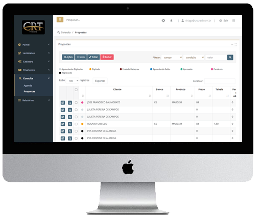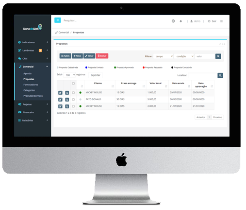 Envio de Propostas, Aceite eletrônico, CRM, Agenda e Financeiro.